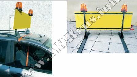 Вертикальные стойки на которые крепится панель - складные. Фиксируются в горизонтальном и вертикальном положении. Легко монтируется на крыше автомобиля прикрытия и демонтируется после рейса.